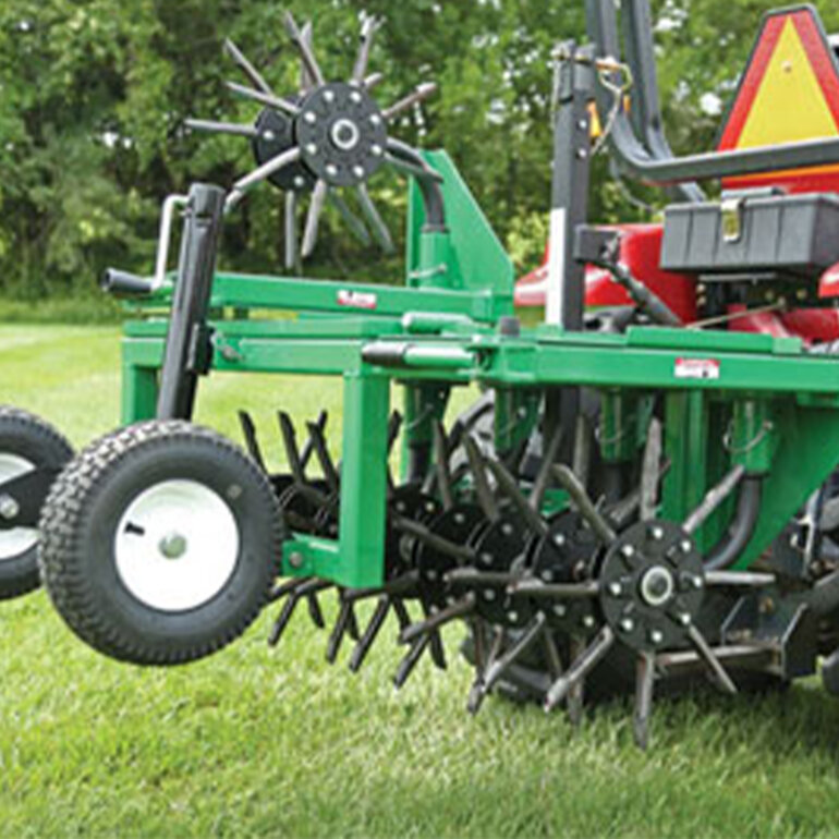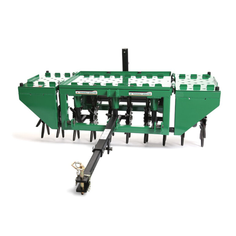 At up to four acres an hour, the tow behind AET60 maximizes large property aeration and configures to widths of 36″, 48″, or 60″ with a simple flip up or down of the aerator’s wings.
