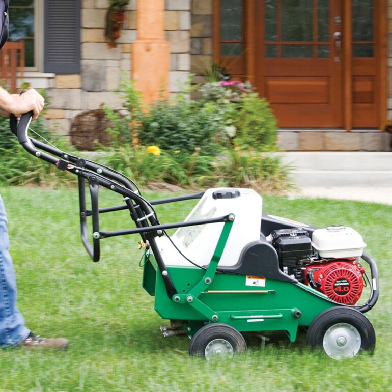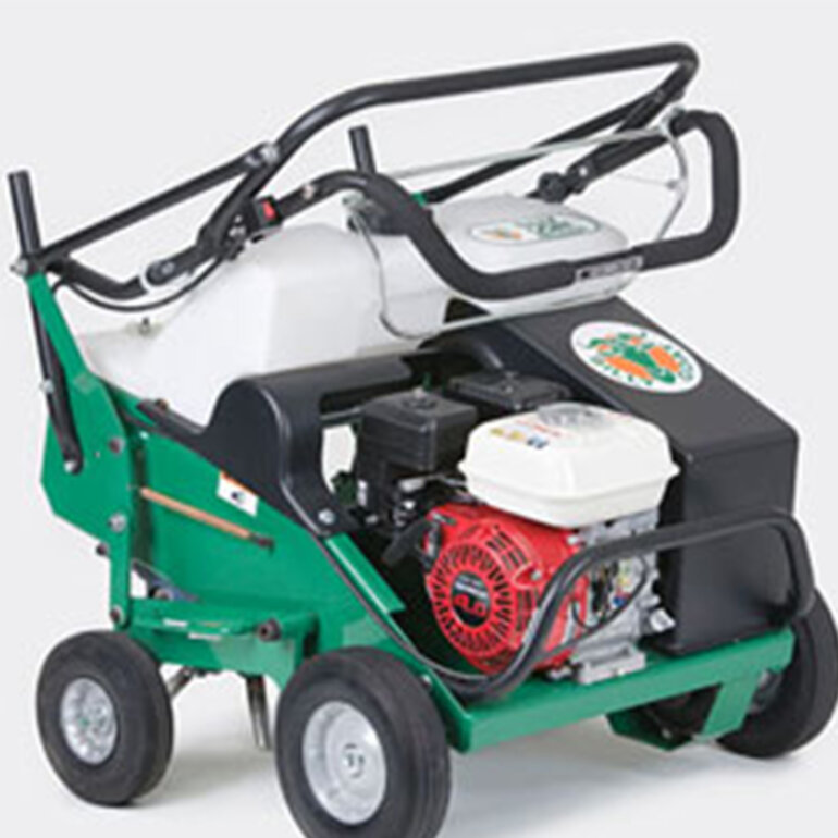 This aerator completely eliminates the conventional and cumbersome center wheel and drum designs found on other models, which are prone to wear, vibration and damage. Billy Goat’s outboard drive wheels also eliminate center wheel slip and abuse from ramp loading with the tines engaged.
