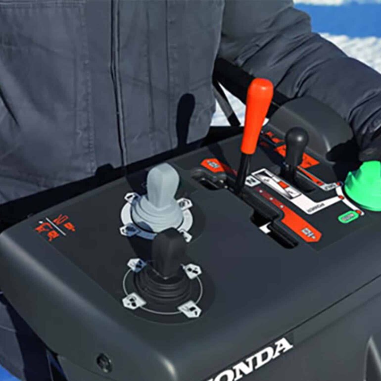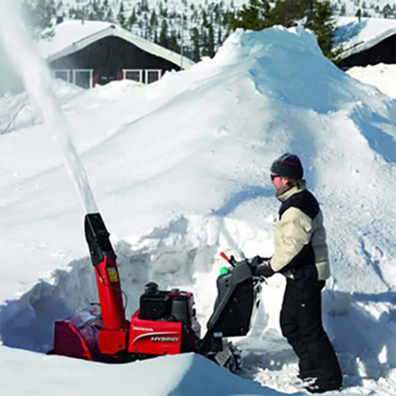 A combination of engine and electric motor power provides powerful snow throwing and uninterrupted travel in motion, simultaneously.