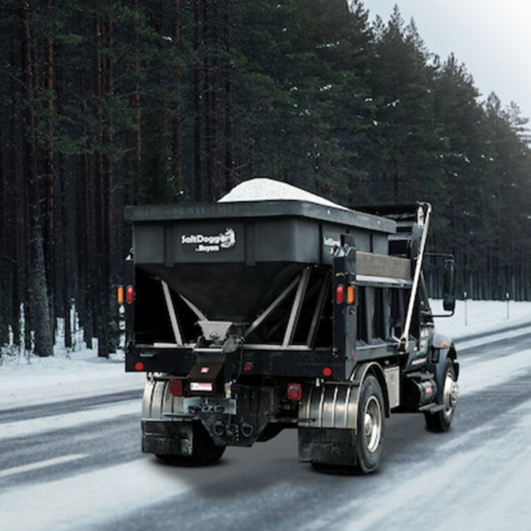 SaltDogg SHPE6000 & SHPE6000CH gives contractors, property managers and municipalities a powerful 6 cubic yard spreader for commercial and municipal use. Works with dump trucks and flatbeds with a minimum 25,999 GVW (gross vehicle weight).