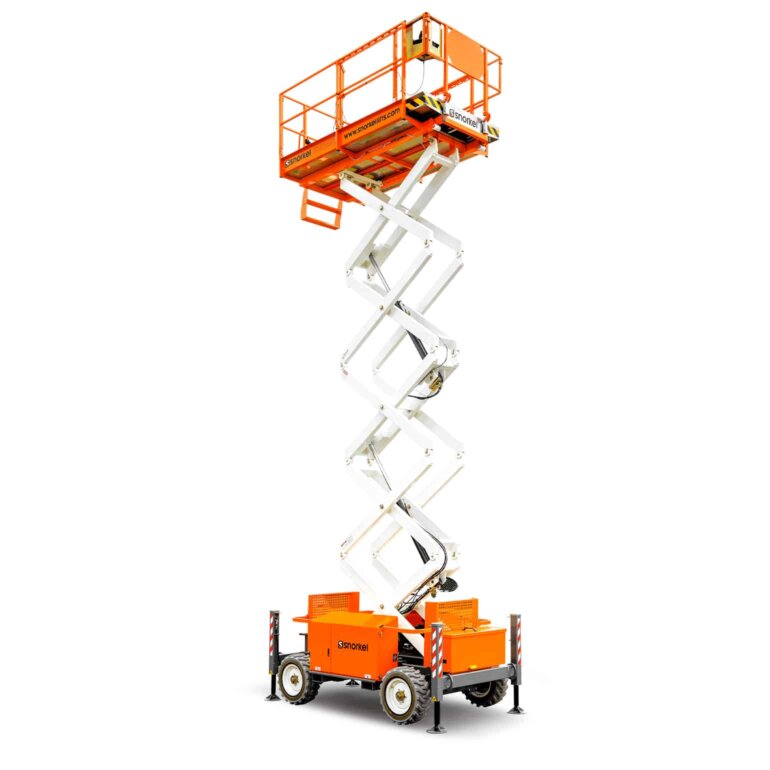 Snorkel rough terrain scissor lift with a bi-energy power system is highly versatile. Use the diesel engine for outdoor work or switch to zero emission battery power for indoor tasks.