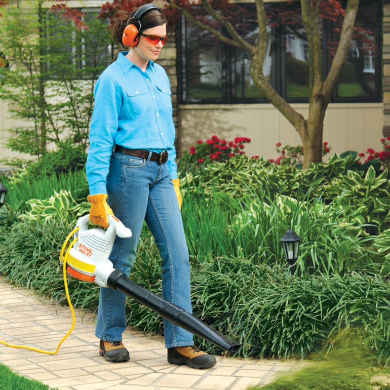 STIHL electric leaf blowers give you a fast and convenient way to clear your walkways. Just plug in and flip the switch. No fuel mixing, no exhaust emissions and no heavy engine to weigh you down. Our electric blowers are great for around the house or in noise-restricted areas like schools and hospital grounds.