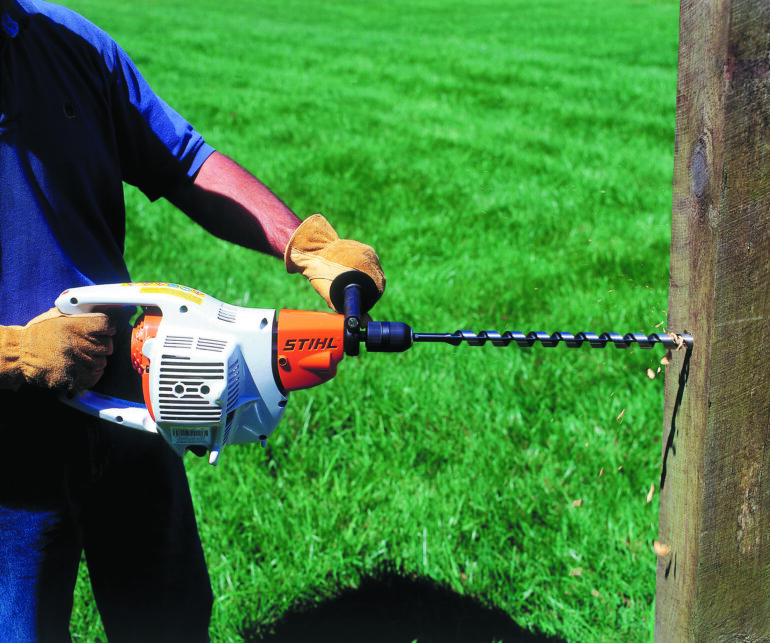 The STIHL wood boring drill’s lightweight, gasoline-powered engine is portable and goes just about anywhere outside. Accepting a wide range of bit sizes, it is ideal for use in building or repairing wooden docks, bulkheads, fences, retaining walls and other structures in locations that lack electricity access.